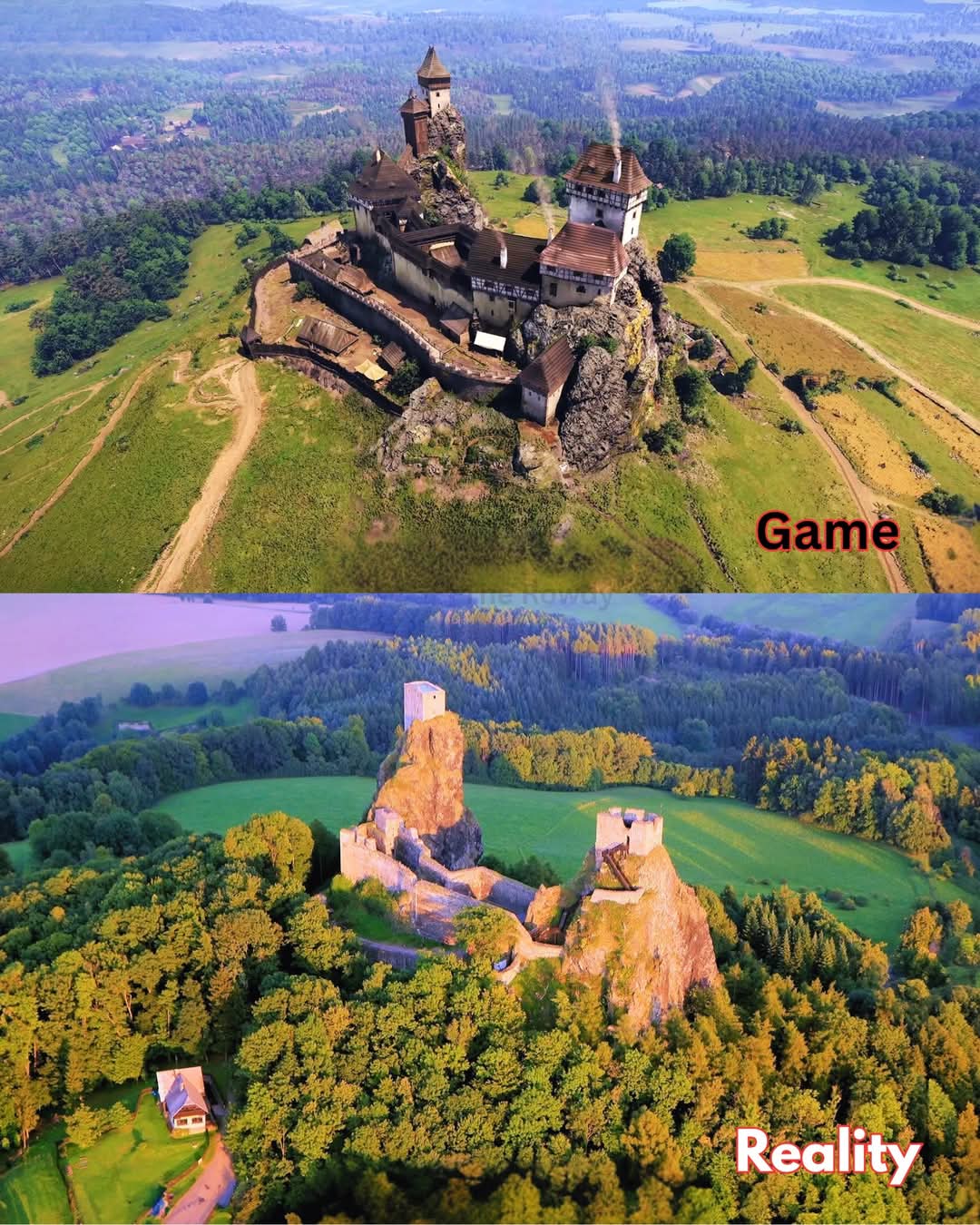 A jedna zajímavost na závěr. V únoru 2025 vyšla autorská hra českého týmu Warhorse Studios s názvem Kingdom Come: Deliverance II, která se odehrává na hradě Trosky a v jeho okolí. Tvůrci hry velmi reálně přeměnili samotný hrad i okolí do podoby 15. století. Jeden obrázek na porovnání.
