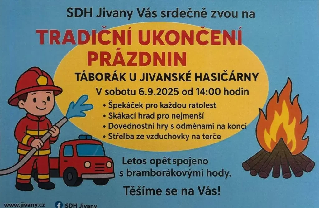 6.9.2025 proběhla akce SDH Jivany, TRADIČNÍ UKONČENÍ PRÁZDNIN Oslava 120. výročí založení SDH Jivany 27.9.2025 se ve Veliši konal závěrečný turnaj Šlikovské nohejbalové ligy v nohejbalu Post Views: 16